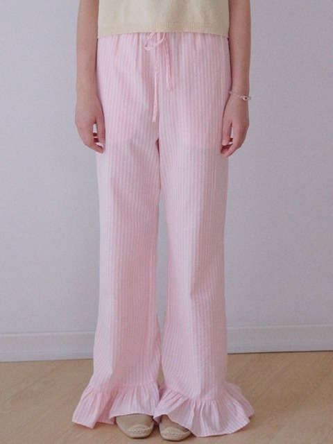 [오쿠카] 썸머 스트링 프릴 팬츠 - 베이비핑크