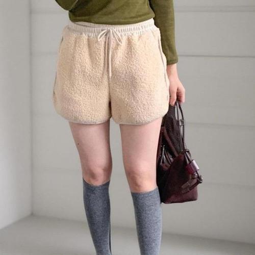 [옷자락]여자 랍빠 뽀글이 겨울숏팬츠 배색 밴딩 3부 반바지