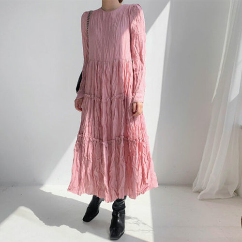슈팅스타 / 라운드넥 주름 슬림 플리츠 원피스 6654846