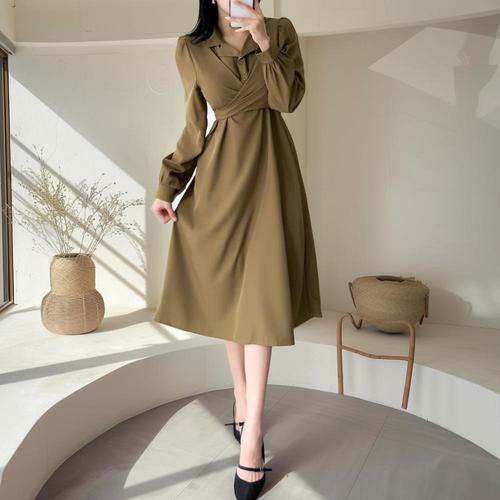 여자 봄 가을 겨울 무지 카라 랩 롱원피스 모임룩 하객룩 오피스룩 상견례 결혼식