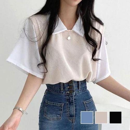 [셀러허브_여성트랜드패션]ONM 여성티셔츠 러블리 페이크 니트조끼 셔츠 여성 일