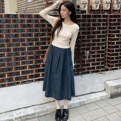옷자락 / 여성 러블리 리본 뷔스티에 긴팔티 세트