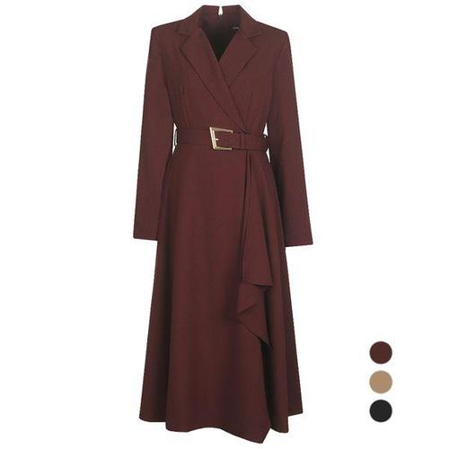 [비비드시크릿가너]여성 가을겨울 러플장식 벨티드 정장 원피스