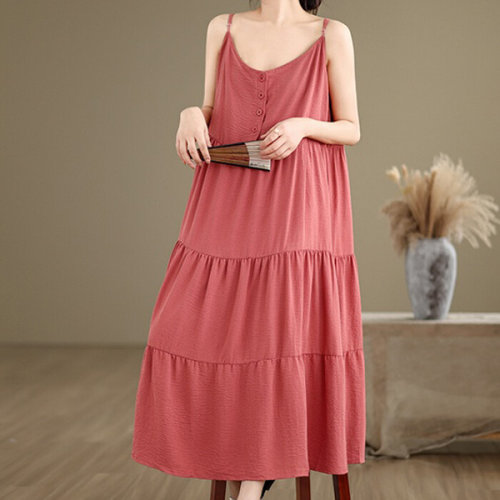 [셀러허브_여성트랜드패션]ONM 여성 원피스 러플 플레어 서스펜더 드레스