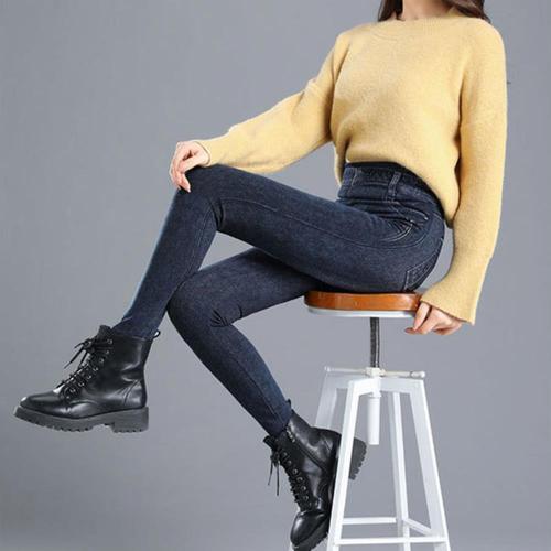 [옷자락]여자 데님팬츠 보온 검정 워싱 진 FW 파란색 레깅스