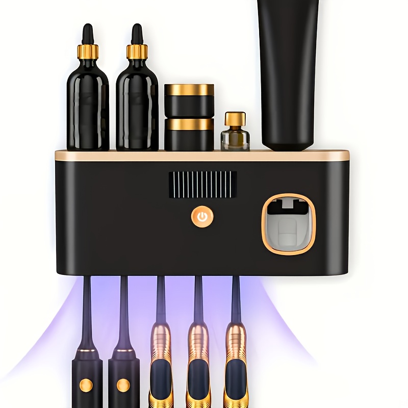 TEMU 1개 스마트 칫솔 거치대 + 자동 치약 디스펜서 - 벽걸이형, 5구 저장공간, 내구성 플라스틱, USB 충전 리튬 배터리 | 모던 욕실 정리함 & 홈 데코