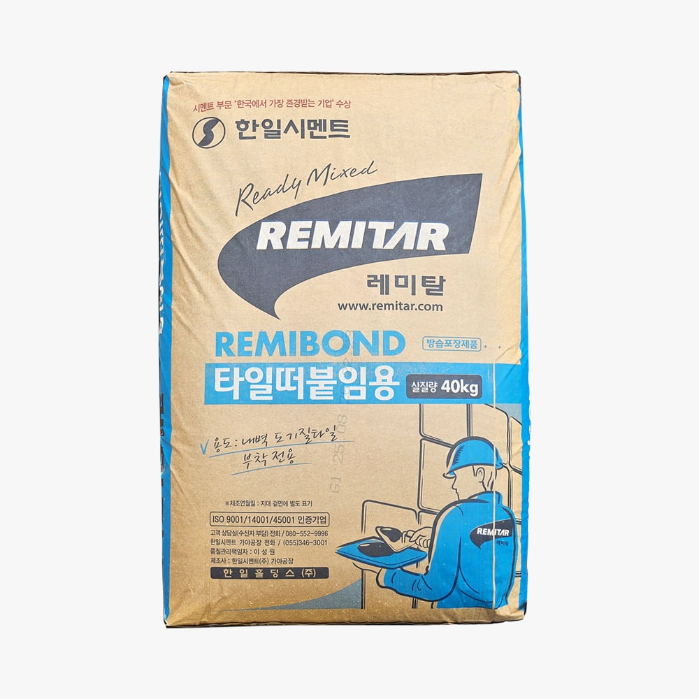타일떠붙임용 떠발이 몰탈 타일 접착시멘트 레미탈 40kg