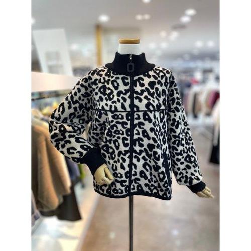 [클리지]루즈핏 레오파드 집업 니트 점퍼 CP8WPD01