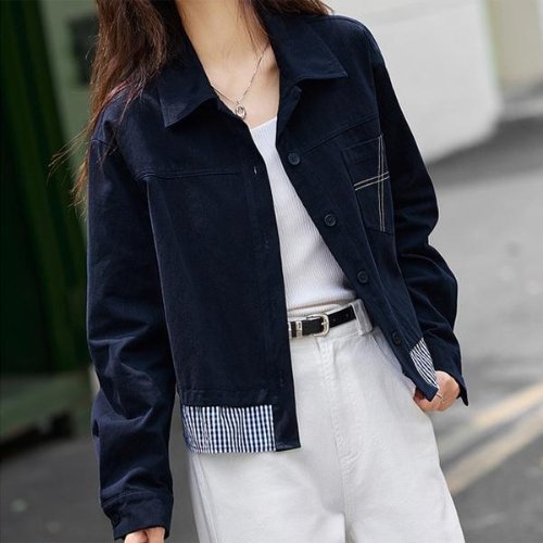 [에이치플러스몰]여름 여자 레이어드 세미크롭 데님 반팔 남방 청 자켓
