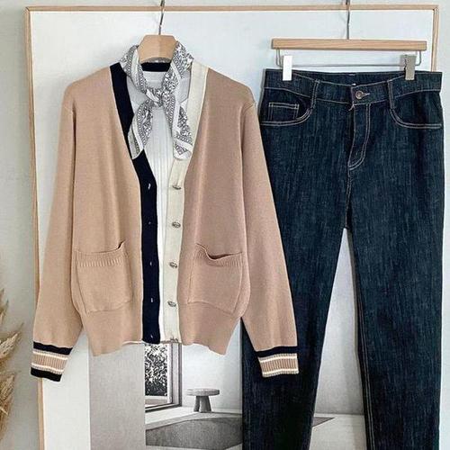 [다잇템_패션]여성 V넥 롱슬리브 카디건 레이온 주머니 니트
