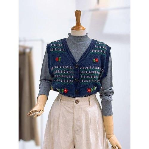 레코브 HC04 꽃자수 니트베스트 LC31EYKV602