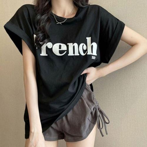 반팔티 여자반팔 여자여름옷 레터링 베이직 롤업 WFKNY9I