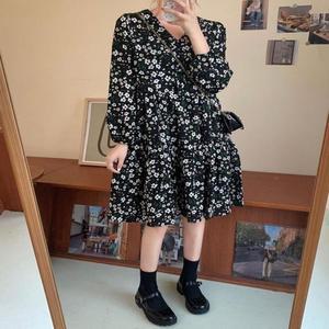 [모노무드]모노무드 3862 여성 가을 카라 쉬폰 플라워 프린트 롱 긴팔 원피스