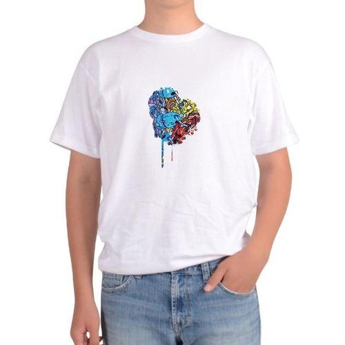 반팔 로봇 프린팅 디자인티셔츠 라운드 나염티 남녀공용 커플