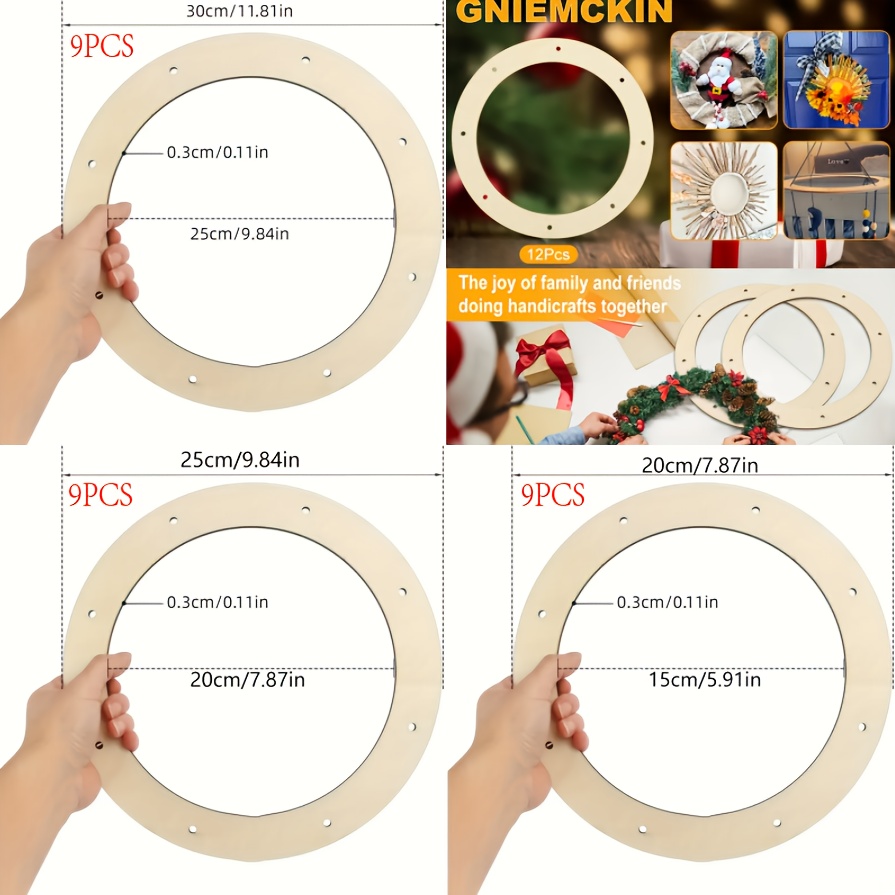 TEMU 27개 나무 화환 프레임 30cm/11.81인치-25cm/9.84인치-20cm/7.87인치, 각 사이즈 9개 DIY 수제 라운드 펀치 블랭크, 화환 만들기, 페인팅, 코스터, 벽 장식 및 사진 소품용 - 크리스마스, 결혼식 및 파티 장식을 위한 중공 목재 원형