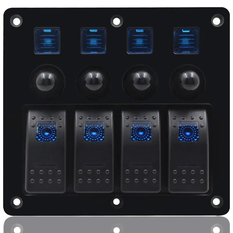 4 버튼 로커 스위치 패널 전압계 USB 충전기 3.0 라이트 토글 12V 24V 보트 용 액세서리 해양 자동차 RV 캠핑카 캐러밴