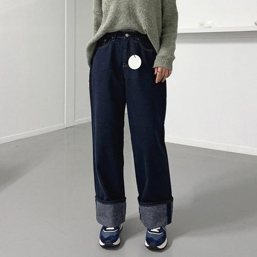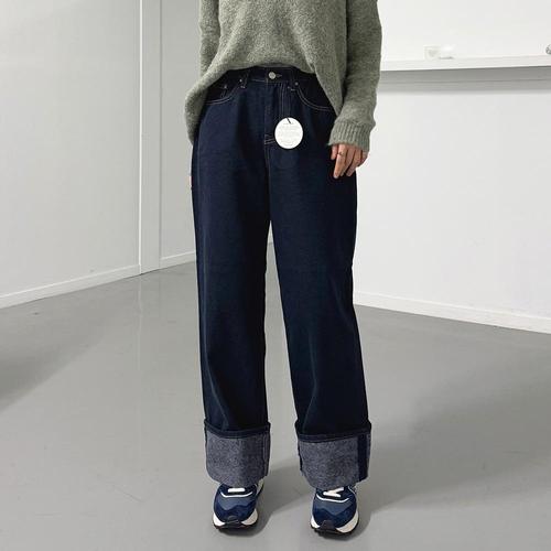 에브리룩 양털 롤업 라인 기모 뒷밴딩 데님 청바지(S-2XL)