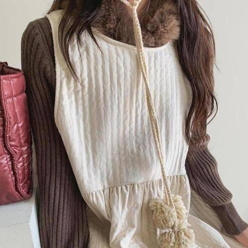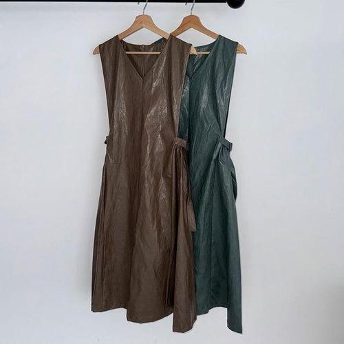 [다잇템_패션]여성 롱 V넥 레더 슬리브리스 에이라인 가을