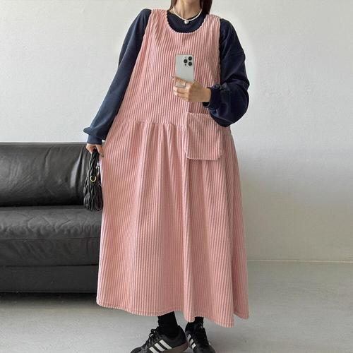 [옷자락]여자 코듀로이 포켓 빅사이즈 기모 민소매 롱원피스
