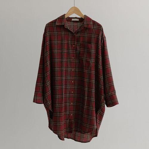 여성 오버핏 체크 셔츠 롱 남방 HH-D49