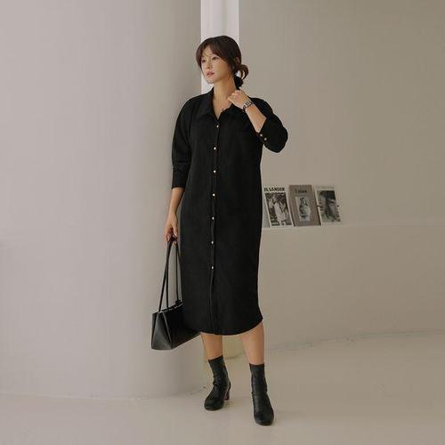 [엘리시아]다르 코듀로이 셔츠 롱 원피스