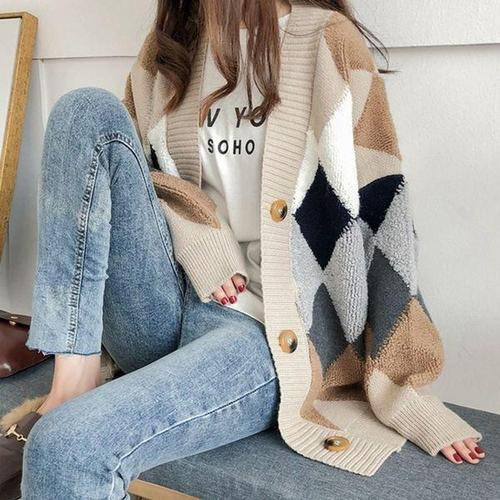[에이치플러스몰]포인트 여성 가디건 아가일 니트가디건 여자 아우터 여성가디건 롱가디건