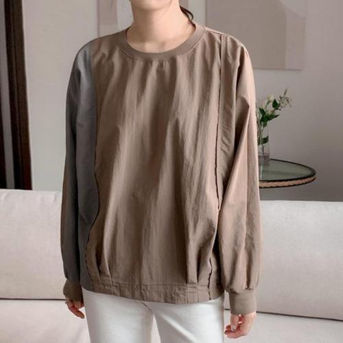 [옷자락]여자 롱슬리브 콘트라스트 U넥 블라우스 컷아웃 티셔츠