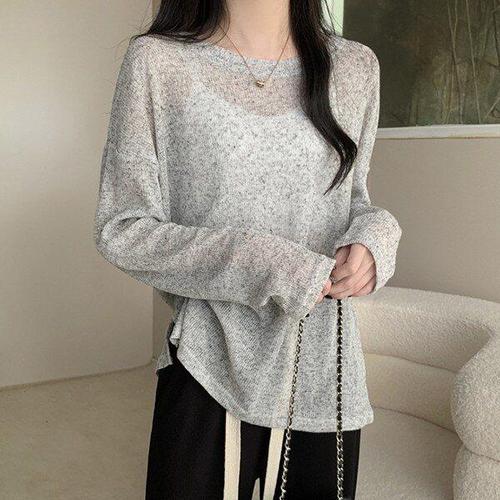 [모노무드]LMO 걸스 멀티컬러 심플 넉넉핏 비침소재커버업 롱티 상의