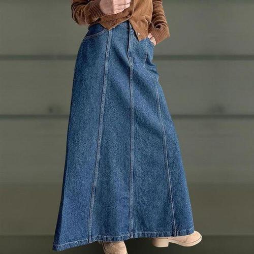 [신상오픈런]여성 롱 데님 스커트 플레어 절개 디자인