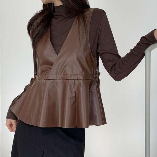 [다잇템]여성 티셔츠와 롱슬리브 코르셋 키치 가죽 세트