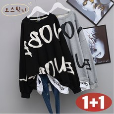 오스틱니 150kg까지 빅사이즈 1+1 레이어드 맨투맨 여성 봄 가을 편한 라운드 겨울 신상기모 프린트 레터링 박시핏 긴팔 박스 긴팔티 오버핏 티셔츠 롱티심플예쁜 코디 외출 간절기