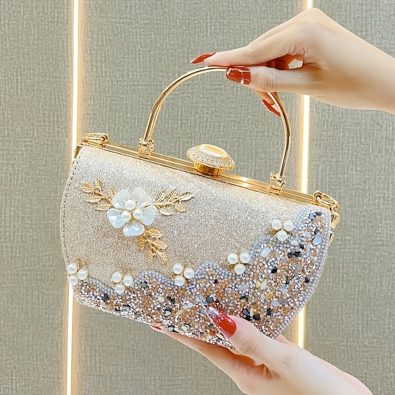 TEMU 반짝이는 꽃 저녁 가방, 빛나는 클러치 웨딩 퍼스, 파티 프롬 저녁 식사용 여성 클립 핸드백 - 카니발 마르디 그라를 위한 완벽한 선택
