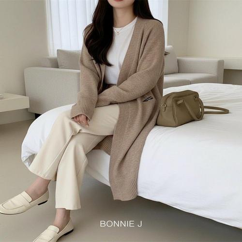 [보니제이]심플 베이직 여성 롱가디건 브이넥 루즈핏 니트 프리