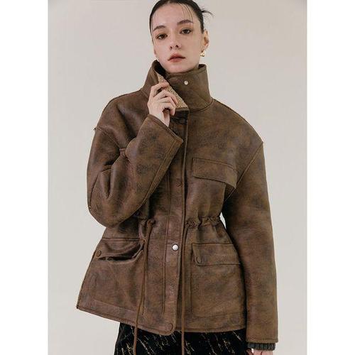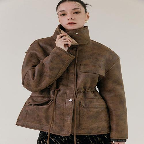 [막스까르띠지오]오버핏 크랙 스트링 하프 무스탕