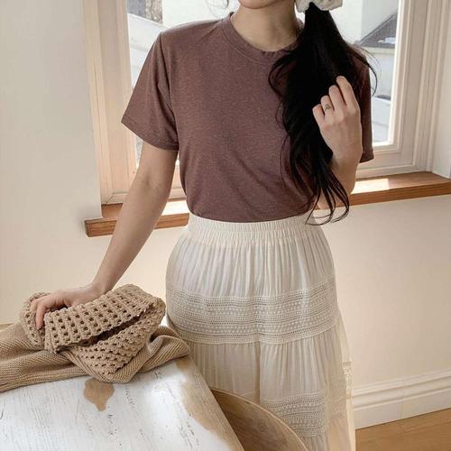 [1+1] [옷자락] 여성 무지컬러 린넨 찰랑핏 라운드넥 반팔티