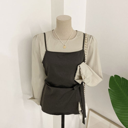 허니제이 / 세트 멘티오 리본 끈조절 뷔스티에 셔링 블라우스(2color)