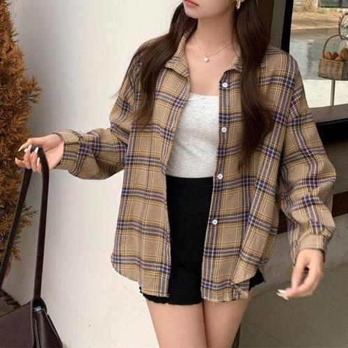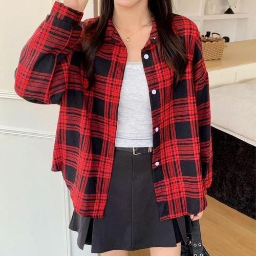 [셀러허브_여성트랜드패션]ONM 제이리본 여성 오버핏 루즈핏 체크셔츠 살안타템
