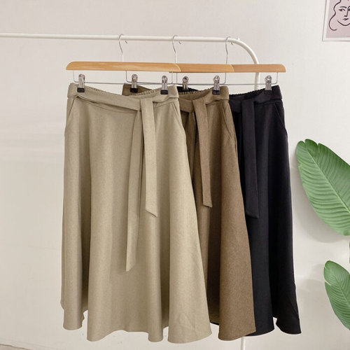 허니제이 / 코체나 플레어 리본 뒷밴딩 롱 스커트(3color)