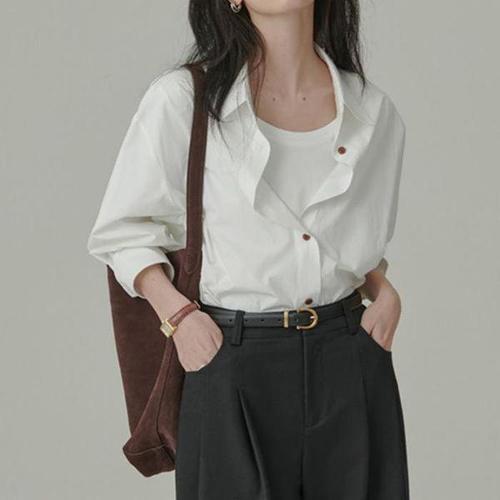 [셀러허브_여성트랜드패션]ONM 제이리본 여성 루즈핏 셔츠 남방 기본 무지 화이