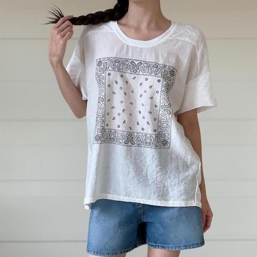 [미라클세븐]여성용 페이즐리 시스루 린넨 여름 반팔 티셔츠