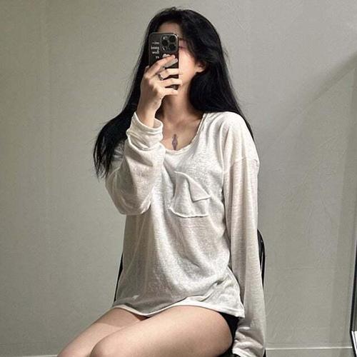 [모노무드]모노무드 여성 시스루 오버핏 긴팔 린넨 티셔츠 반팔 티