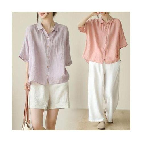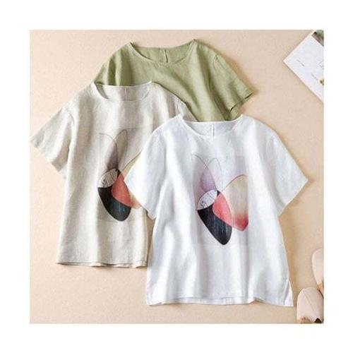 [신상오픈런]여성용 페이즐리 시스루 린넨 여름 반팔 티셔츠