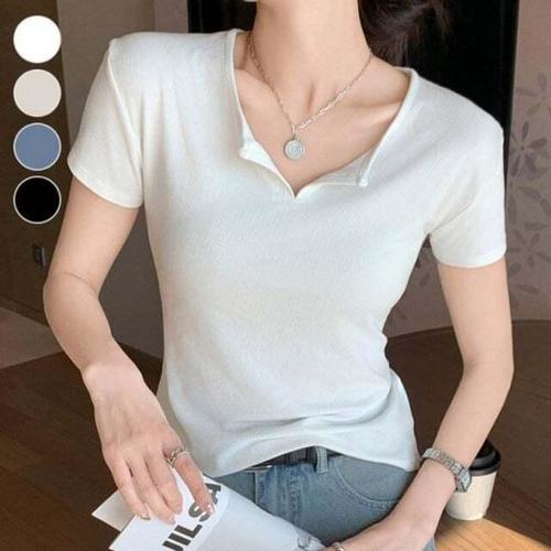 [모노무드]모노무드 EDT 반오픈 여름티 쇄골보이는 날씬 린넨 여성슬림반팔
