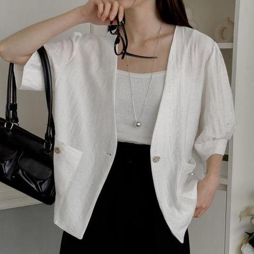 여성 여름 린넨 마 오픈 빅사이즈 반팔 블라우스 크롭 자켓 미시 하객 학부모 모임 오피스룩 엄마옷