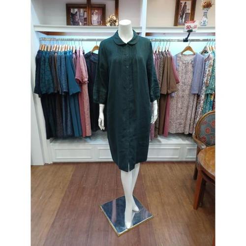 [옷자락]여자 핀턱 카라넥 롱 더블버튼 린넨 반팔 원피스