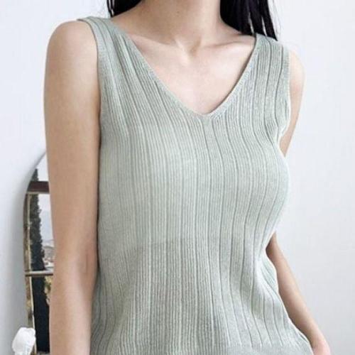 [에이치플러스몰]골지 린넨 캐주얼 민소매 나시 필수템 니트 티셔츠