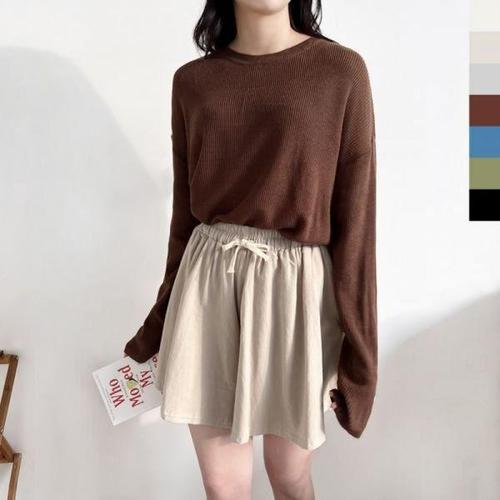 [에이치플러스몰]여성 루즈핏 린넨 긴팔 니트 1P 라운드 봄여름 티셔츠