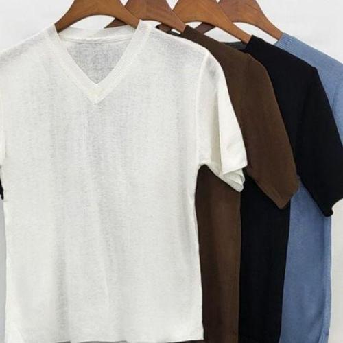 [에이치플러스몰]썸머 린넨 추천 반팔 니트 꾸안꾸 티셔츠
