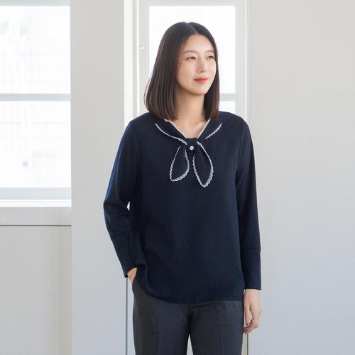 엄마옷 마담4060 체인배색리본블라우스-ZBL2503048-