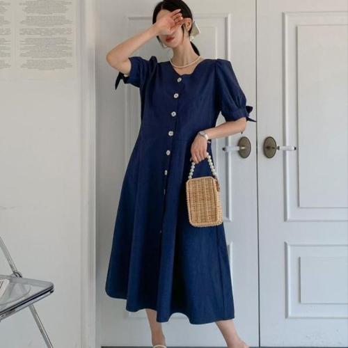 [다잇템]여자 코튼 반소매 롱 마원단 카라넥 원피스